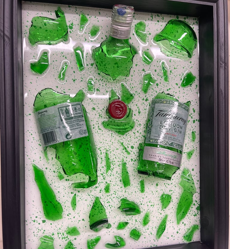 Quadro con bottiglia rotta Tangueray Gin