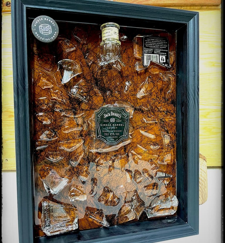 Quadro con bottiglia rotta Rum Zacapa